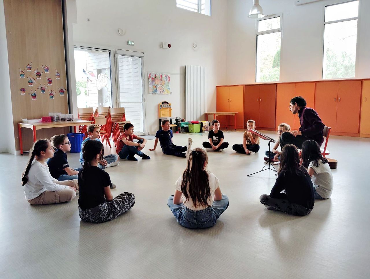 En maternelle, Petit Ours est toujours présent pour débuter la séance. Véritable rituel, cette entrée en matière est très appréciée des élèves qui attendent ce moment avec impatience. Entre apprentissages de chants, comptines mimées, jeux d’accordéon et de guitare, les enfants suivent Laurent du regard sans jamais le quitter, de peur de manquer une seule seconde de ces instants musicaux précieux.