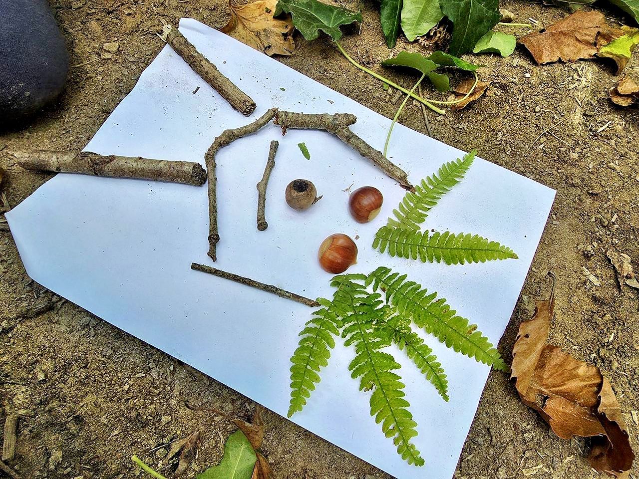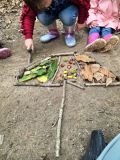 Land art d’automne pour exprimer leur créativité avec les éléments naturels (feuilles, branches, cailloux, glands) ;