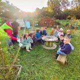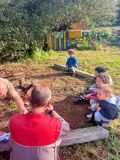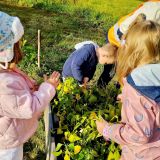 Cette année, les élèves de maternelle partent à nouveau à l'école du dehors, menée en partenariat avec les membres du jardin pédagogique Mosaïque et en lien avec la Châtaigneraie de M. Logodin.
